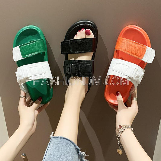 切り替えストラップカジュアル丸トゥ厚底オープントウサンダル