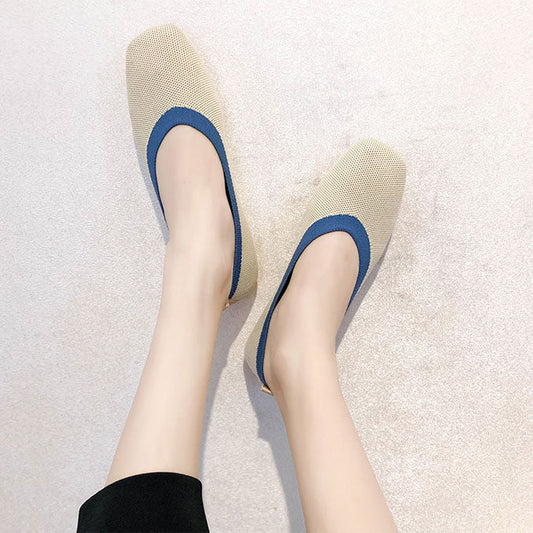 手編み引き替えパンプス 柔らかい生地 3D立体編みを採用し 耐磨耗アウトソール 歩きやすく10キロ歩いていても 履き疲れないです