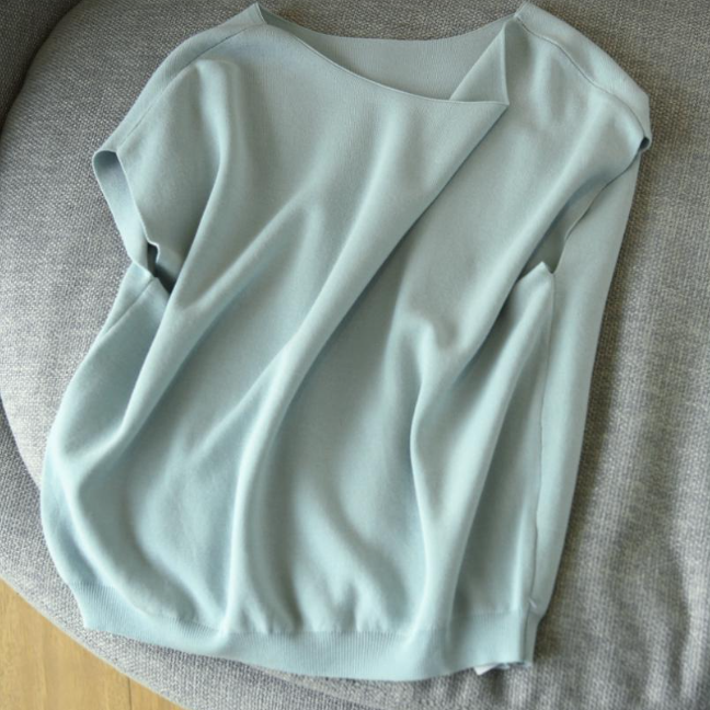 アイスシルク半袖Tシャツ、スタイリッシュなバットスリーブ、ゆったり着痩せ、肉カバープルオーバー、着やせスタイル