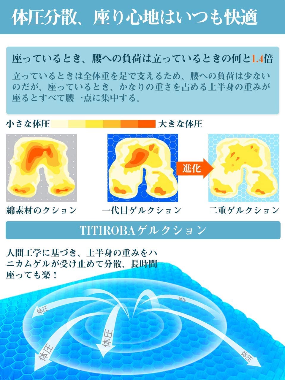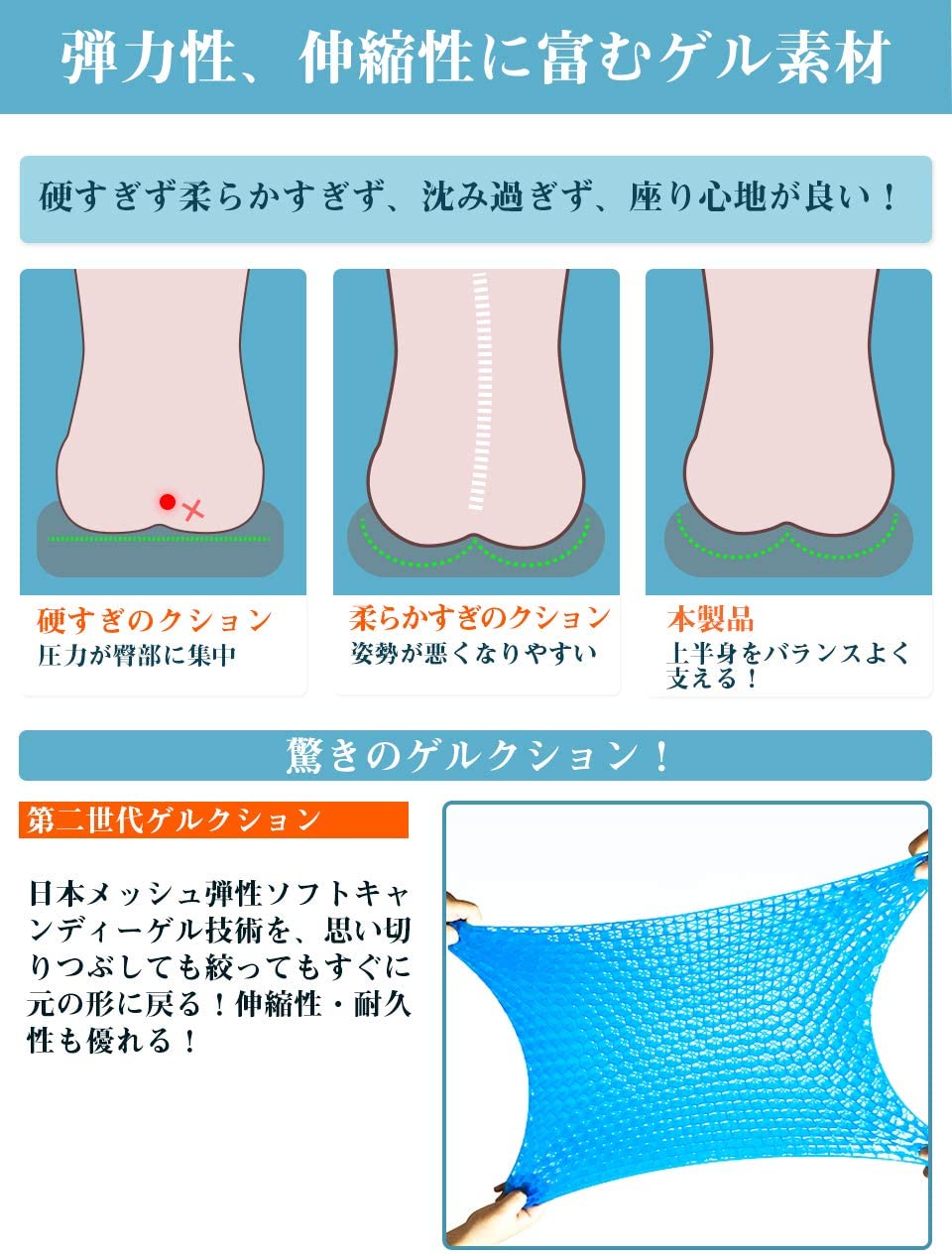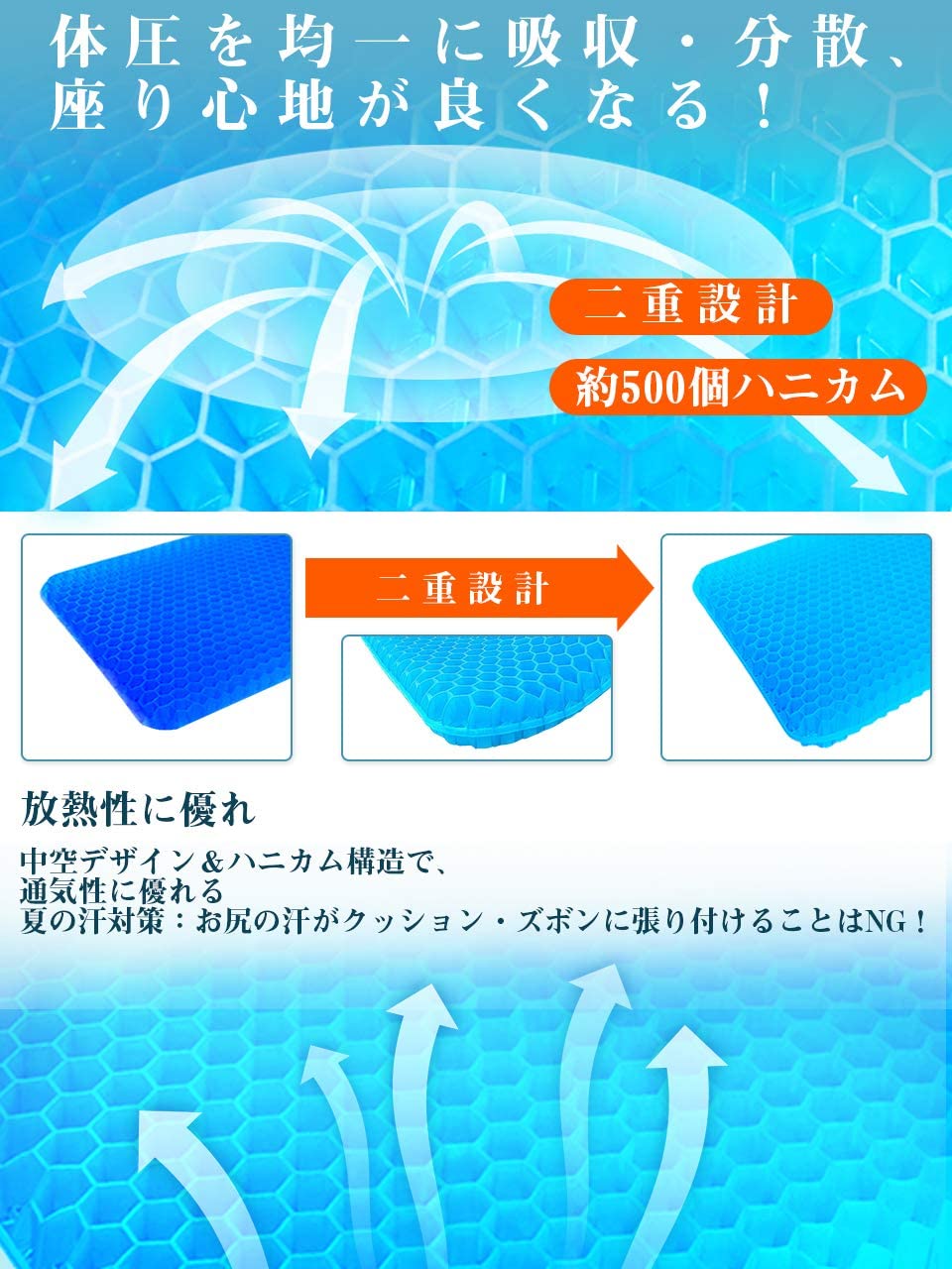 - 【進化2重設計、クッション性】第二世代ゲルクッション、非常に丈夫で柔軟性と耐久性に良い。約500個ハニカムと二重設計、両面使用でき、良い姿勢を保てる。