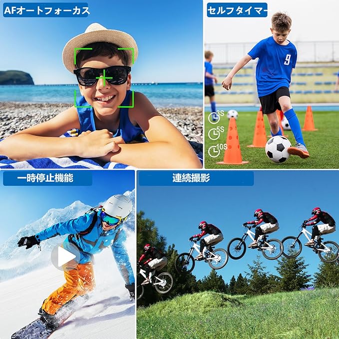 - 【AFオートフォーカス機能&フィルライト】このデジタルカメラ4KはAFオートフォーカス機能を搭載しております。シンプルな操作で自動的にピントを合わせて、初心者でも鮮明的に写真を撮ることができます。(シャッターボタンを浅い押してピントをあわせます。更に深く押して撮影できます)。フィルライトが内蔵されており、シーンに応じてオンとオフを切り替え、暗い場所でも撮れます。ミニデジカメとはいえ、自撮り/連続撮影/セルフタイマー/一時停止など、他にもたくさんの機能があります。デジタルカメラからデジカメの第一歩を踏み出し、人生のいろいろな瞬間を記録し始めよう。クリスマス、誕生日など特別な日に、友人や家族へのプレゼントにも最適です。通常、製品は 3 ~ 5 メートル以内の音のみを読み取ることができます