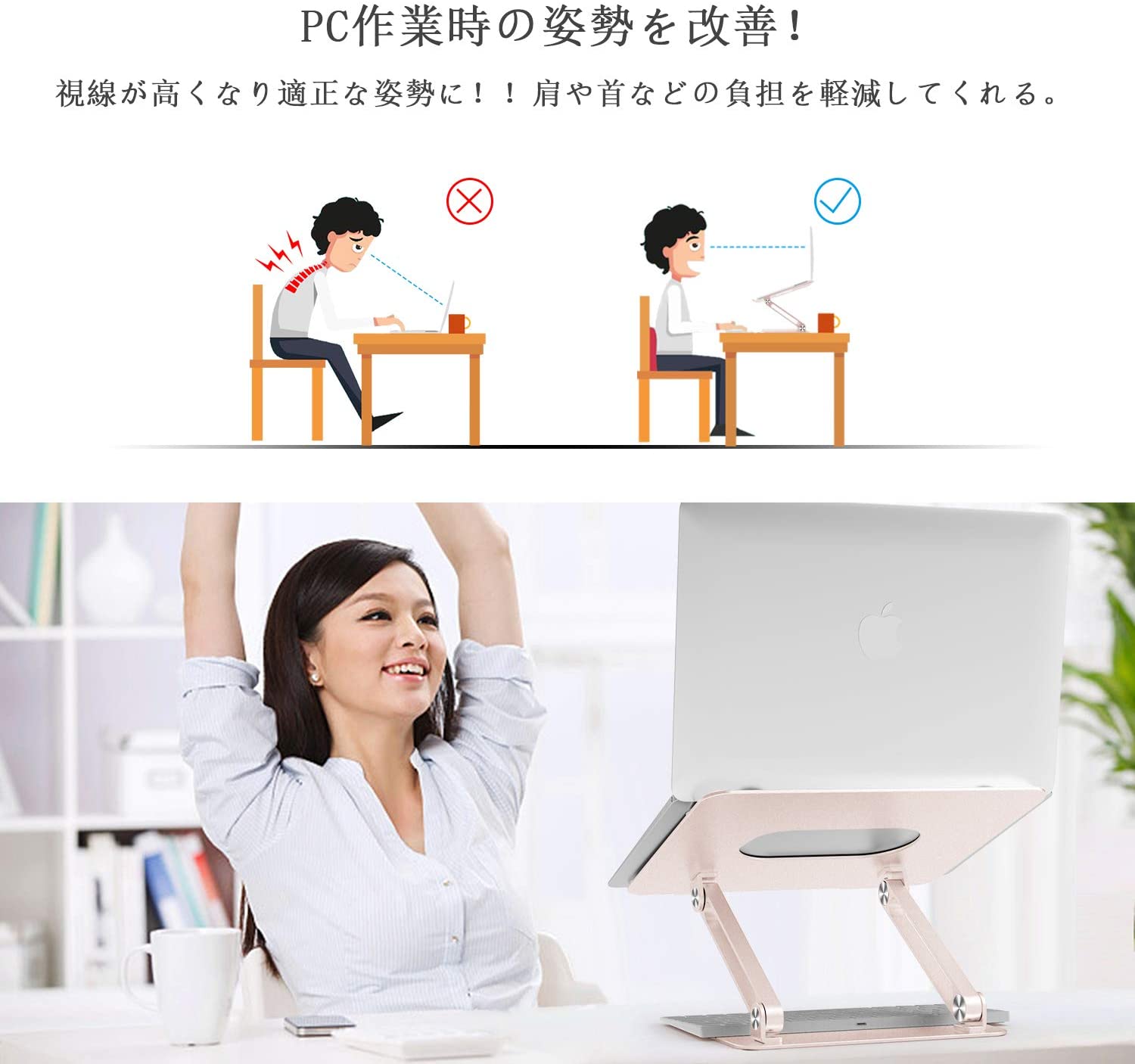 - 【無段階角度・高さ調整可能】●人間工学に基づいて設計により、PC作業時、角度・高度を無段階調整可能で自分に最適な高度まで調整できるパソコンスタンド!●デスクが低いためデスクワークの際に腰に負担がかかってしまっていたが、Boyataスタンドを使うことによってパソコンを目線と同じ高さにする事で背筋が伸び、猫背などを有効に防止、背中が丸まりにくくなって、リモートワーク時代の必需品 !!