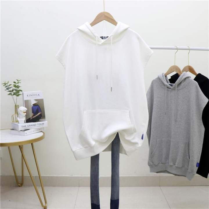 パーカー フレンチスリーブ レディース トップス スウェット フード付き ゆったり 体型カバー 大きいサイズ ポケット付き 重ね着 カジュアル 無地 大人 春