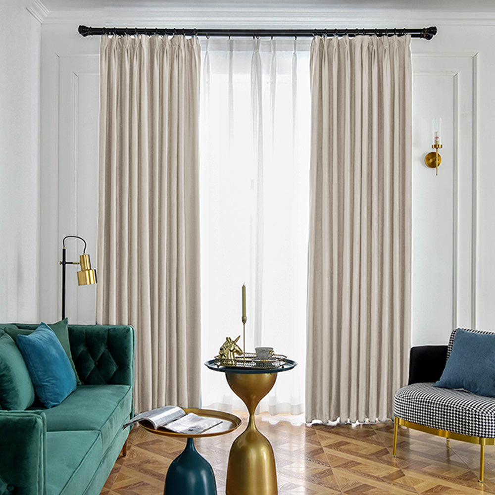 【ベージュ】ベルベットカーテン カーテン 遮光カーテン 遮光1級 防音カーテン 防寒 遮音 目隠し ふわふわ ベルベット生地 北欧 おしゃれ 厚手 ドレープカーテン 幅 り 洗える