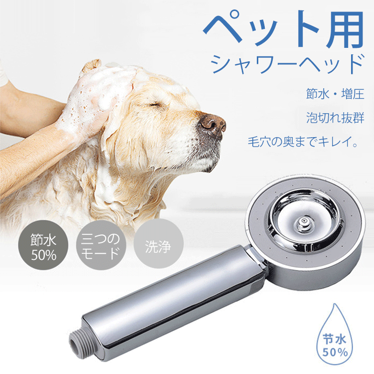 【ペット用シャワーヘッド】ペットケアに必須 節水・増圧 穴あけ不要 ミスト水流 自宅でもサロン並みに!