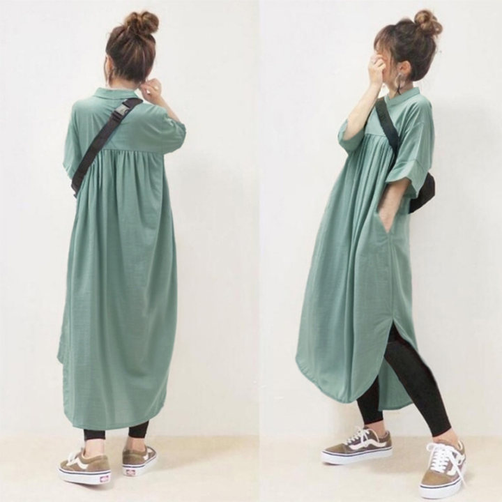 ミントグリーンワンピース ランタンスリーブ 五部袖 ゆったり