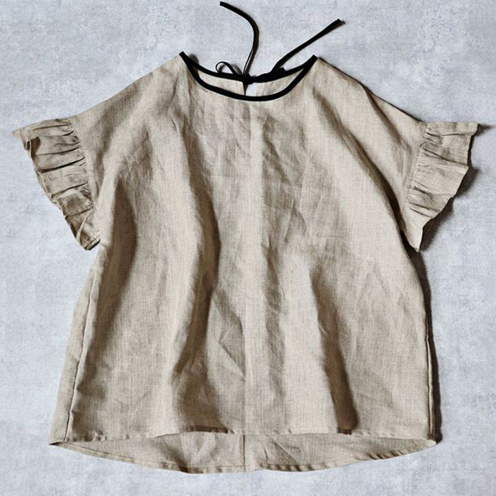 品質のいい新品 ファッション キュート きれいめ系 後のリボンレースアップバック 体型をカバー ギャザー 切り替え フリルスリーブ シャツ・ブラウス