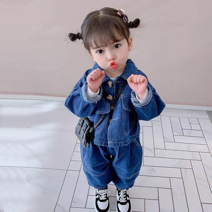 子供用デニムジャケットとパンツのツーピースセット、女の子用カジュアルスポーツウェア、春と秋のウェア