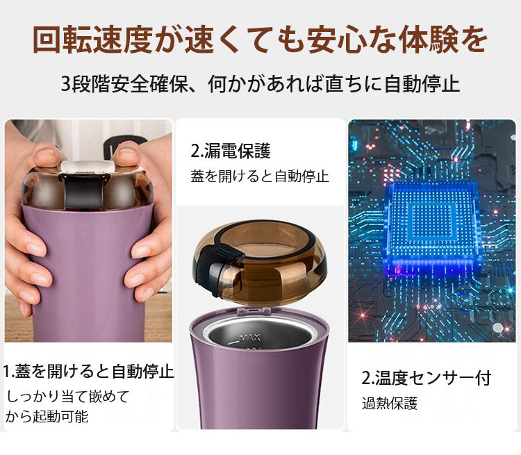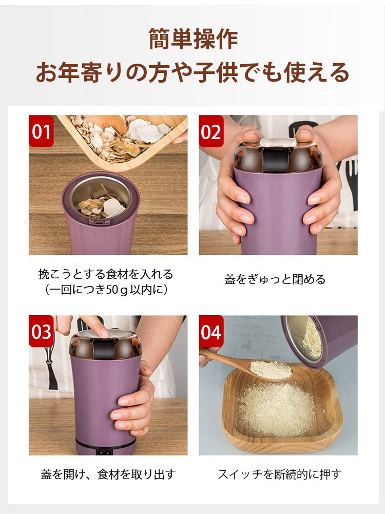 【手持ち電動ミル】 粗さを自由調節 食材の無駄を出さない 低消費電力 コンパクト式で持ち運び便利
