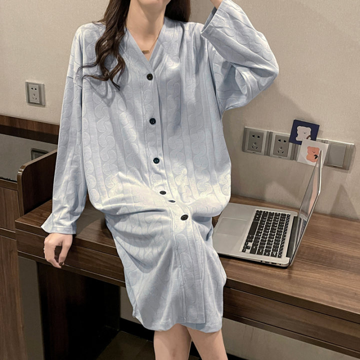 春と秋の純綿ナイトガウン、パジャマ、女性用の甘いプリンセススタイルのカーディガンロングスカート、家着として着用できます。