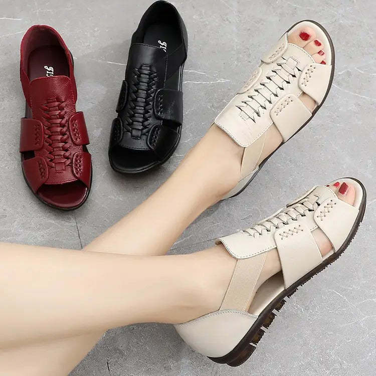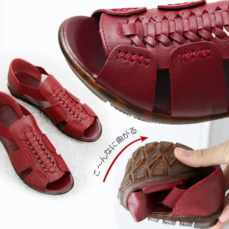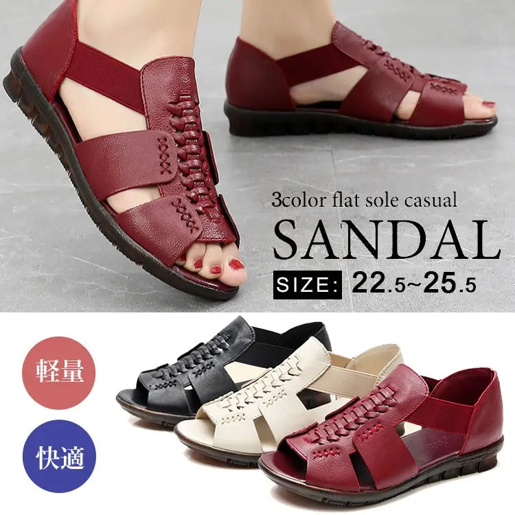 【本革編み込みサンダル】軽量、しなやかなソール、快適、爽やか、夏の涼しい仕様 合わせやすい