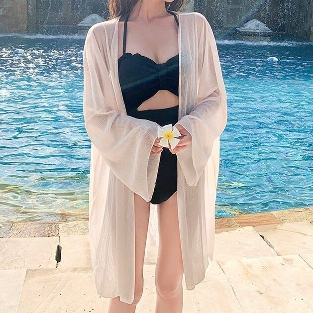 水着カバーアップレディースシーサイド日焼け防止シャツは水中で使用でき、ビーチリゾート温泉の薄いコート、多用途のゆったりとした水着です。