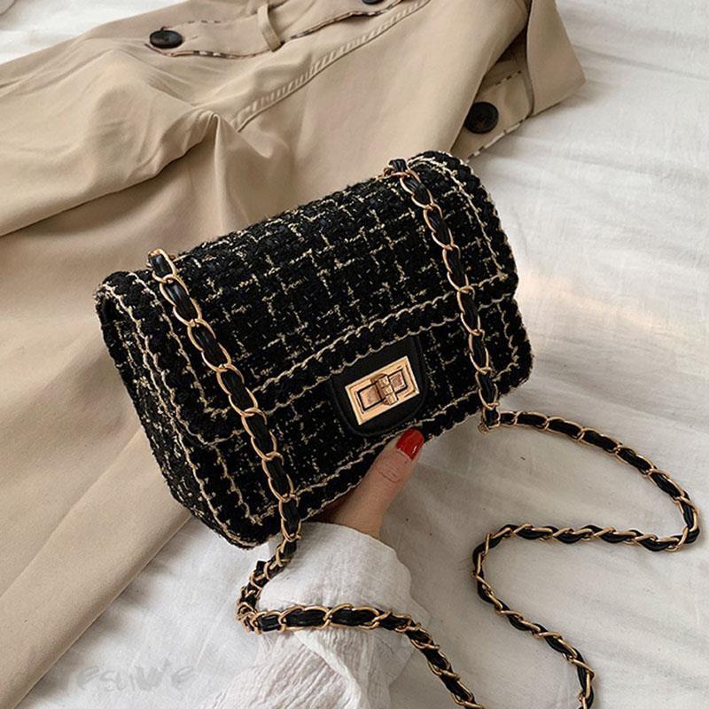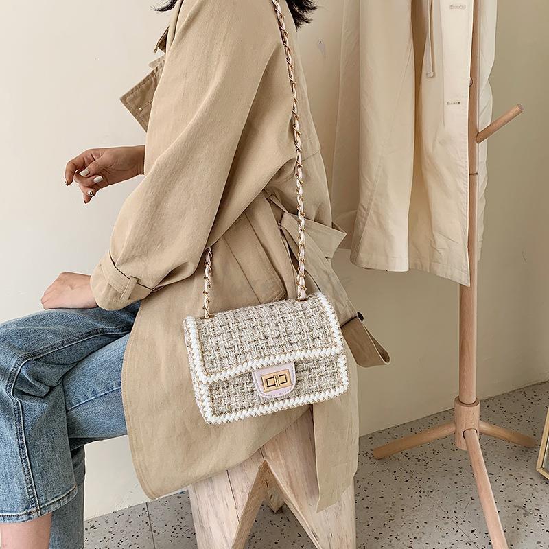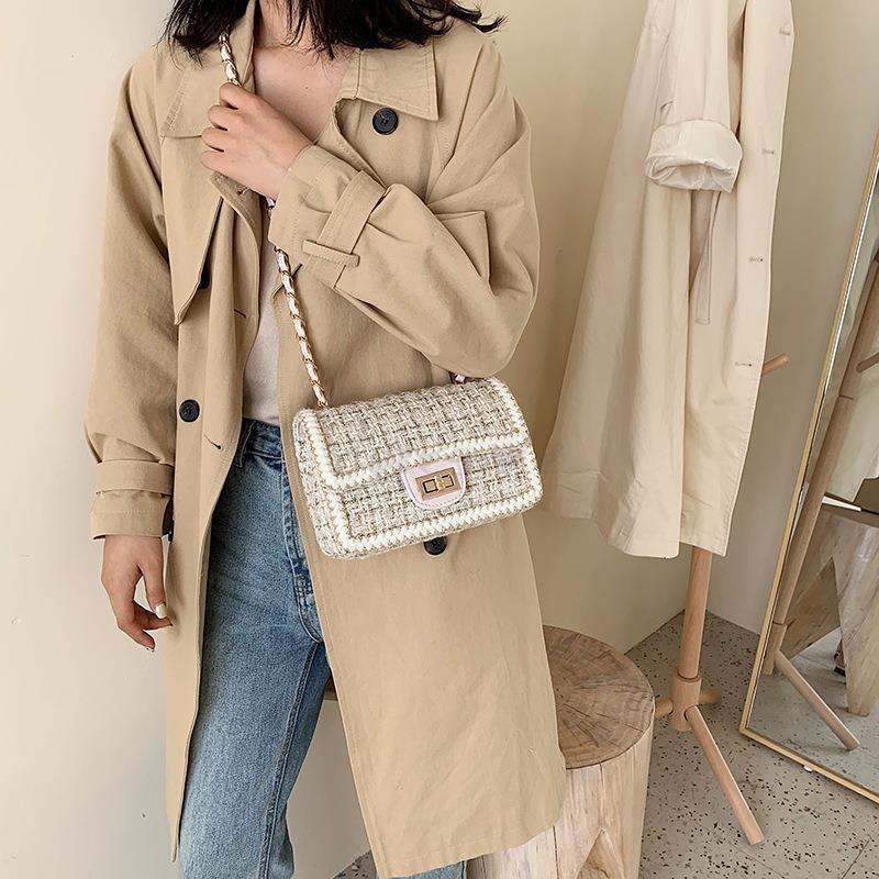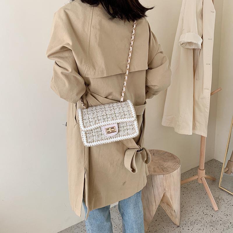 無地チェーン 小物入れデコラティブ フェミニン ショルダーバッグ
