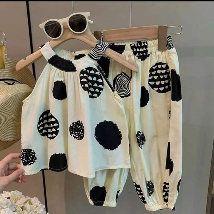 絶対欲しい プリント 幾何模様 コットン リゾート風 韓国系 トップス+ゆったりボトムズ 2点セット