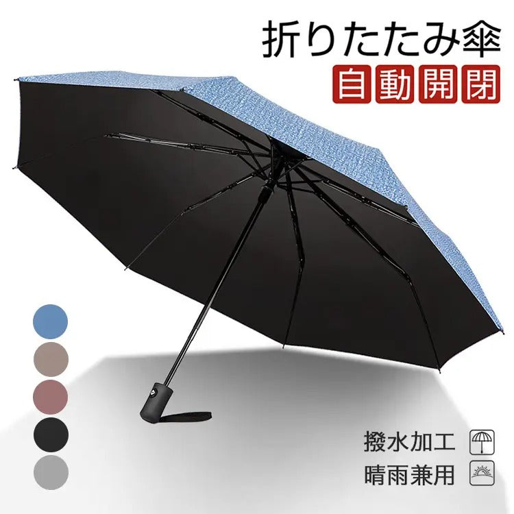 【自動開閉式折り畳み傘】ビジネス全自動 晴雨両用折畳式 ブラックコーティング UVカット日傘