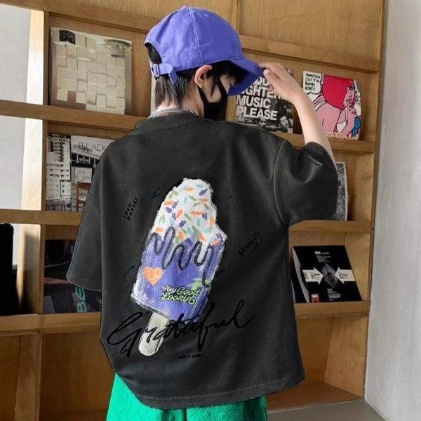 韓国ファッション 夏 キッズ ジュニア 子供服 男の子 ゆったり かっこいい 落書き プリント 半袖 トップス カットソー Tシャツ