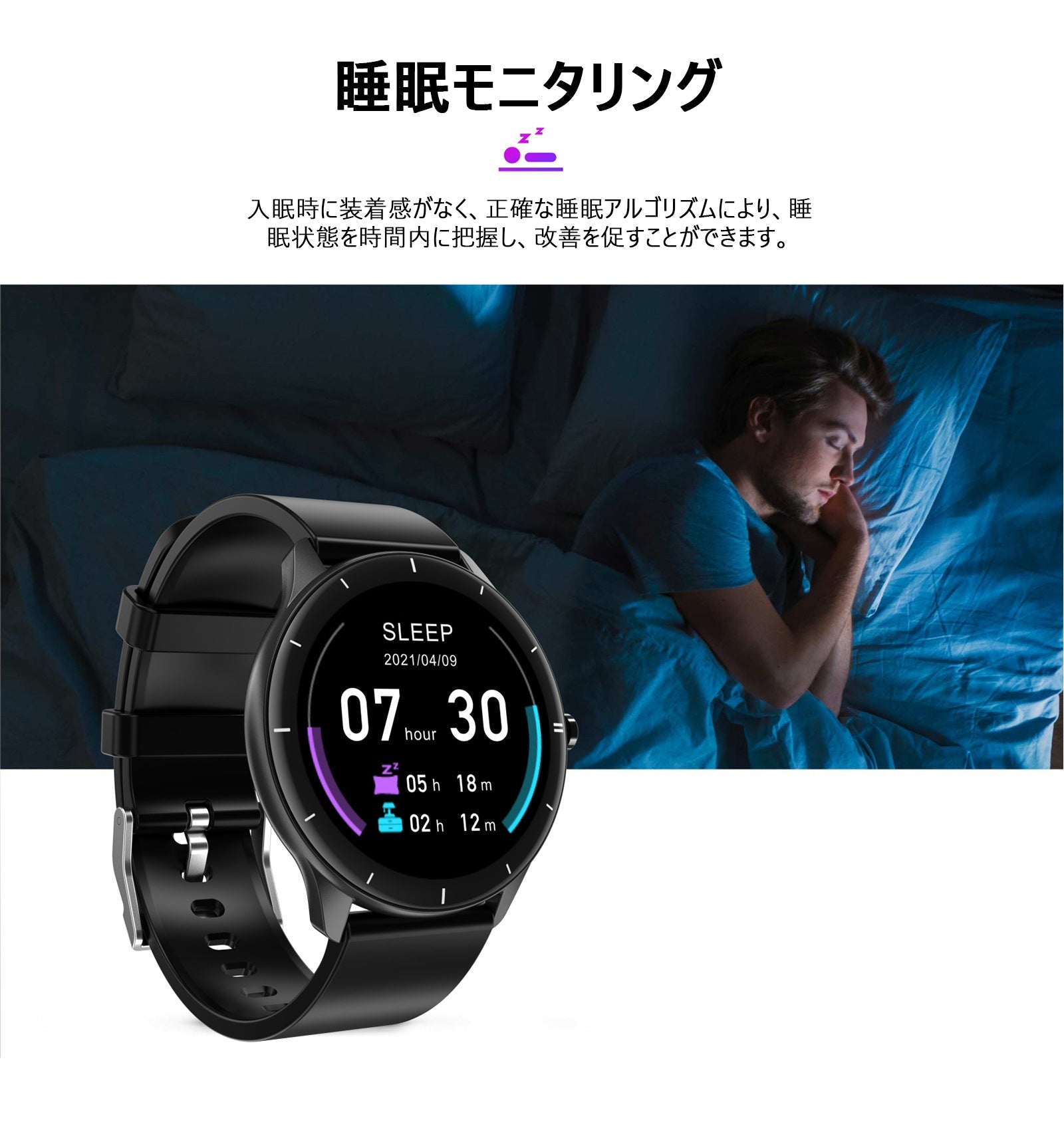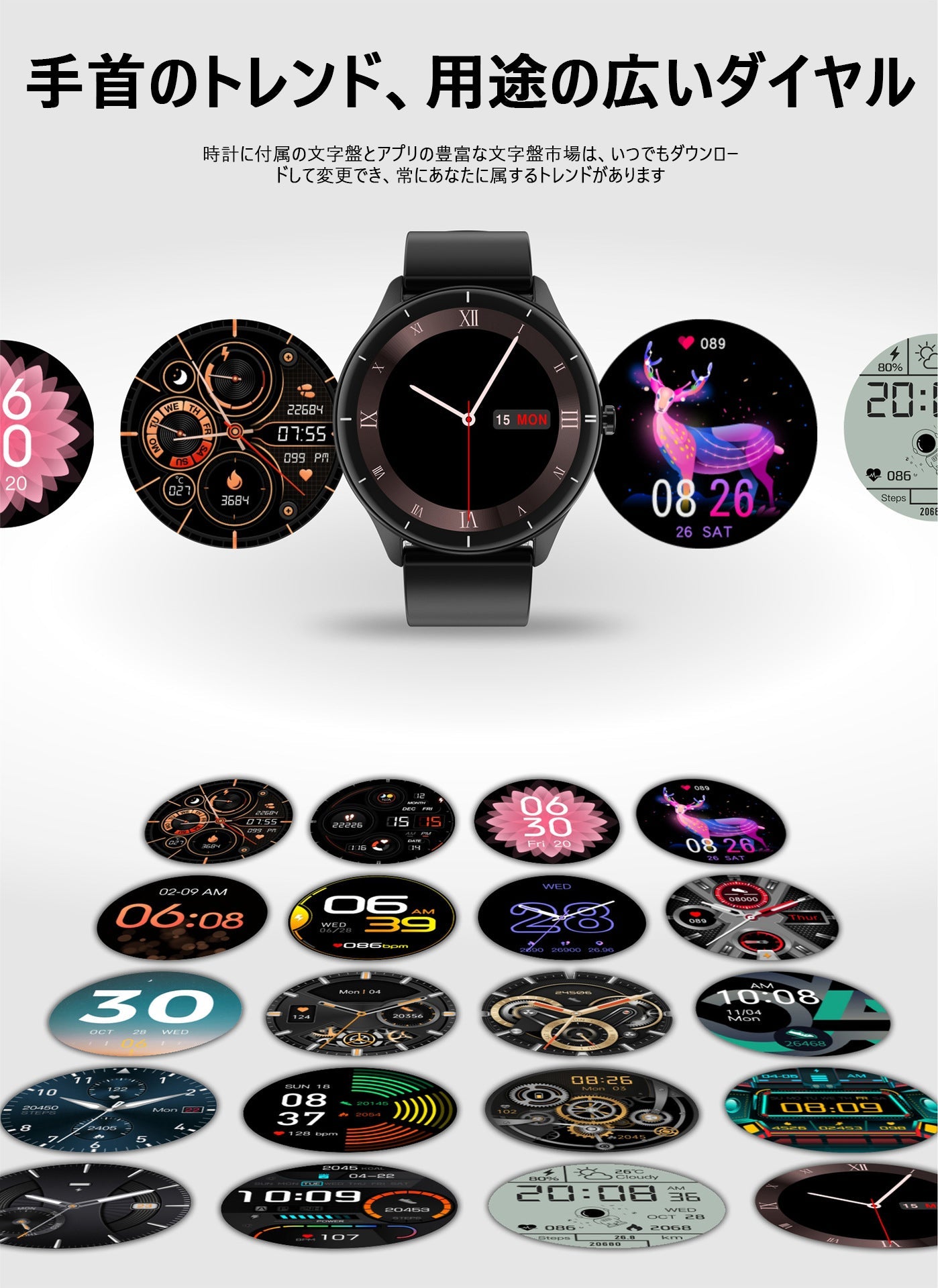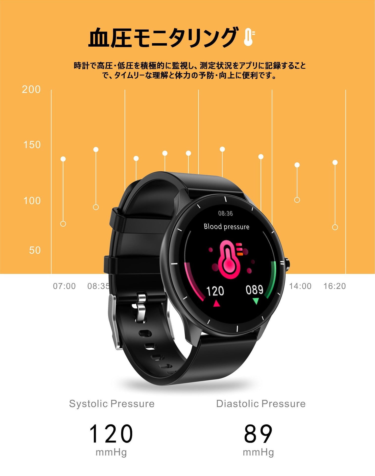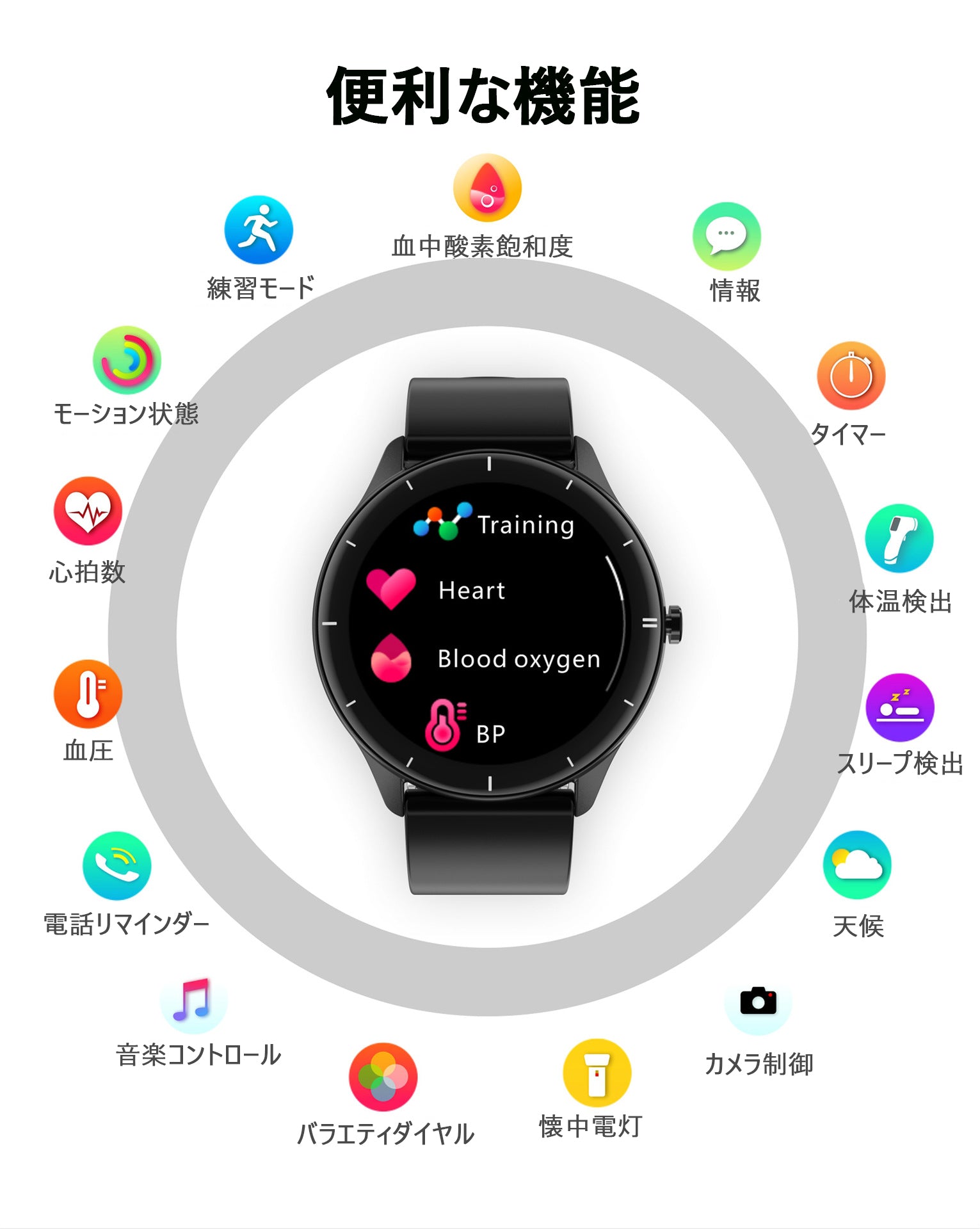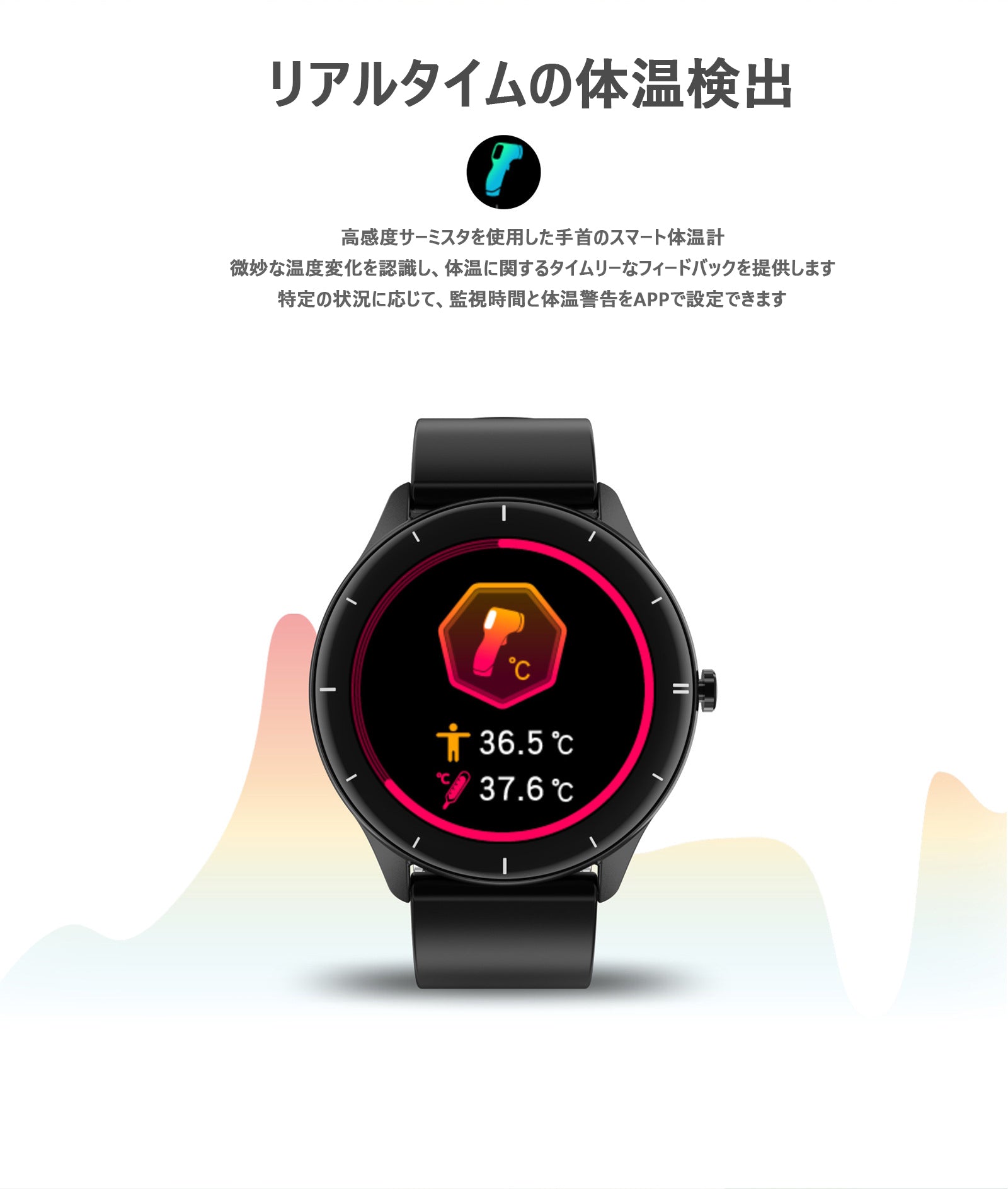 【2021 新しいスマートウォッチ】 体温 心拍数 血圧 血中酸素 24 スポーツモード ラウンドスクリーン ブレスレット